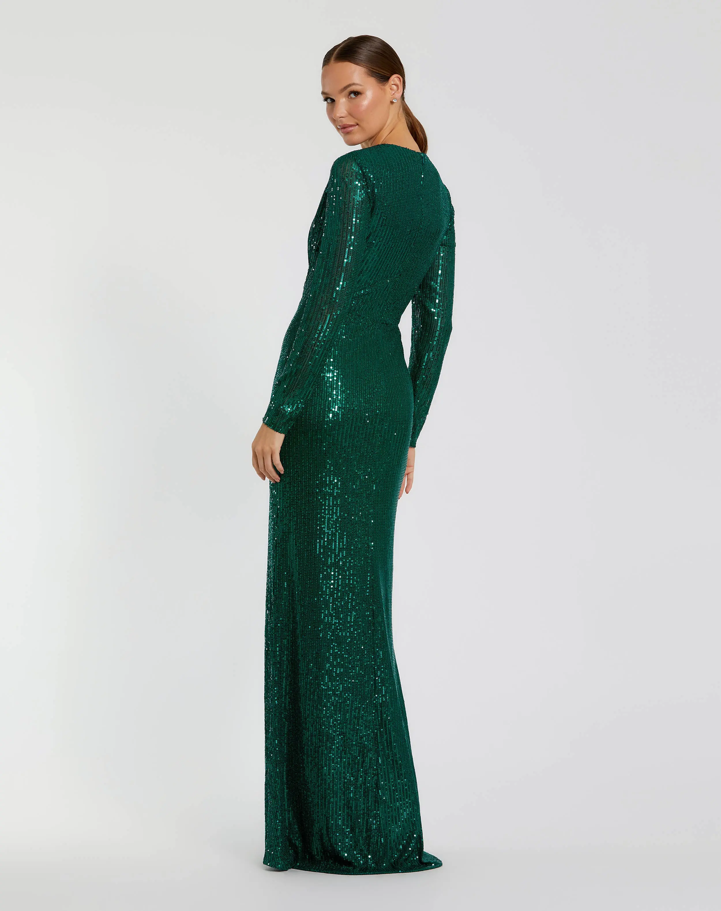 Green Sequined Long Sleeve Side Knot Gown